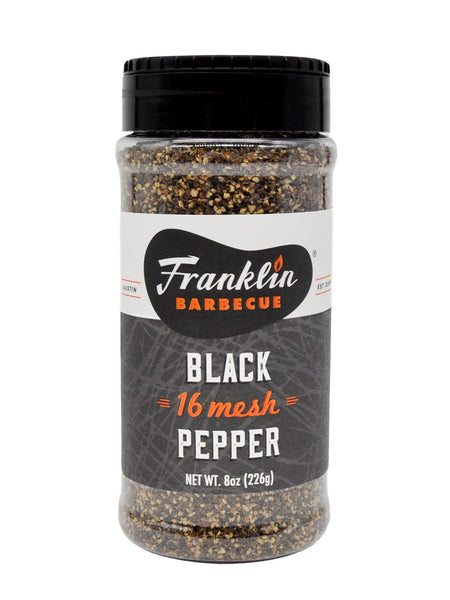 Aromatic, and coarse-ground, Franklin Black 16 Mesh Pepper delivers legendary Texas BBQ flavor. Developed by Aaron, its uniform granules cling to meat for perfect bark on brisket, ribs, steak, and chicken. Pure, simple, and unmistakably Franklin.